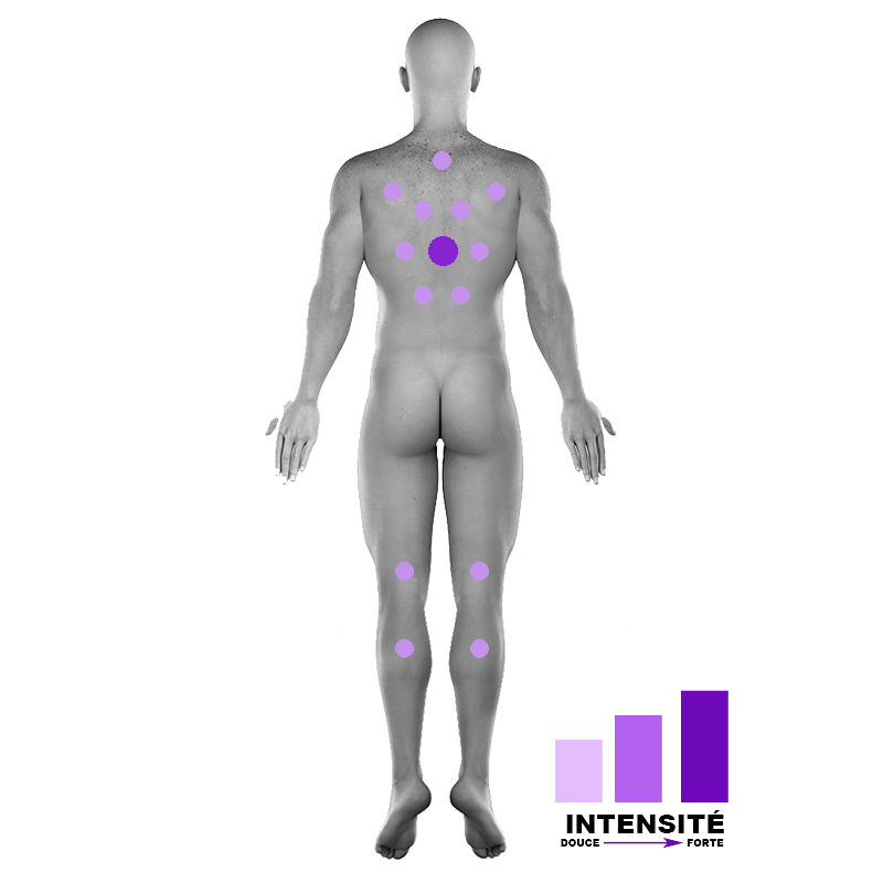 Cette 3eme place concentre son action sur la zone charnière entre les épaules et le milieu du dos, idéale pour soulager les tensions liées : aux positions assises prolongées (travail, conduite, ordinateur), aux gestes répétitifs (ménage, bricolage), au stress accumulé dans les épaules.